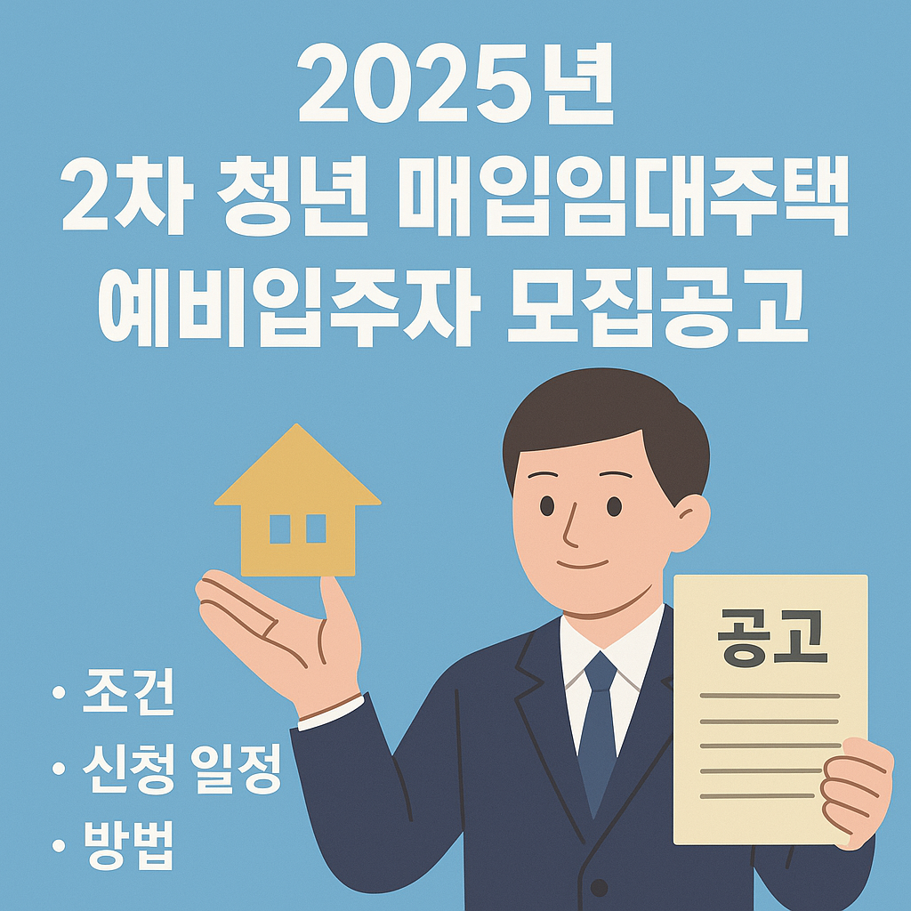 한국토지주택공사(LH)가 2025년 2차 청년 매입임대주택 예비입주자 모집공고를 발표했습니다. 이번 모집은 만 19세~39세 이하의 무주택 청년을 대상으로 하며, 저렴한 임대료와 우수한 입지 조건을 갖춘 공공임대주택을 공급합니다. 공고 일정, 자격 조건, 신청 방법까지 한눈에 정리해드립니다.